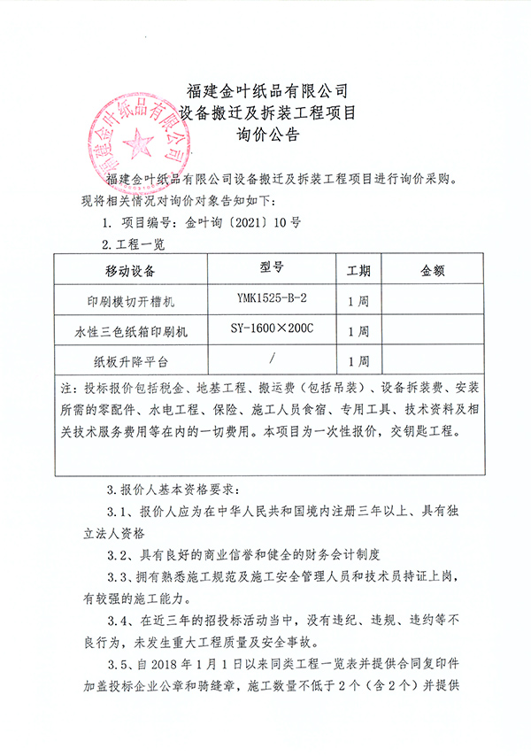 設(shè)備搬遷及拆裝工程項(xiàng)目詢價(jià)公告