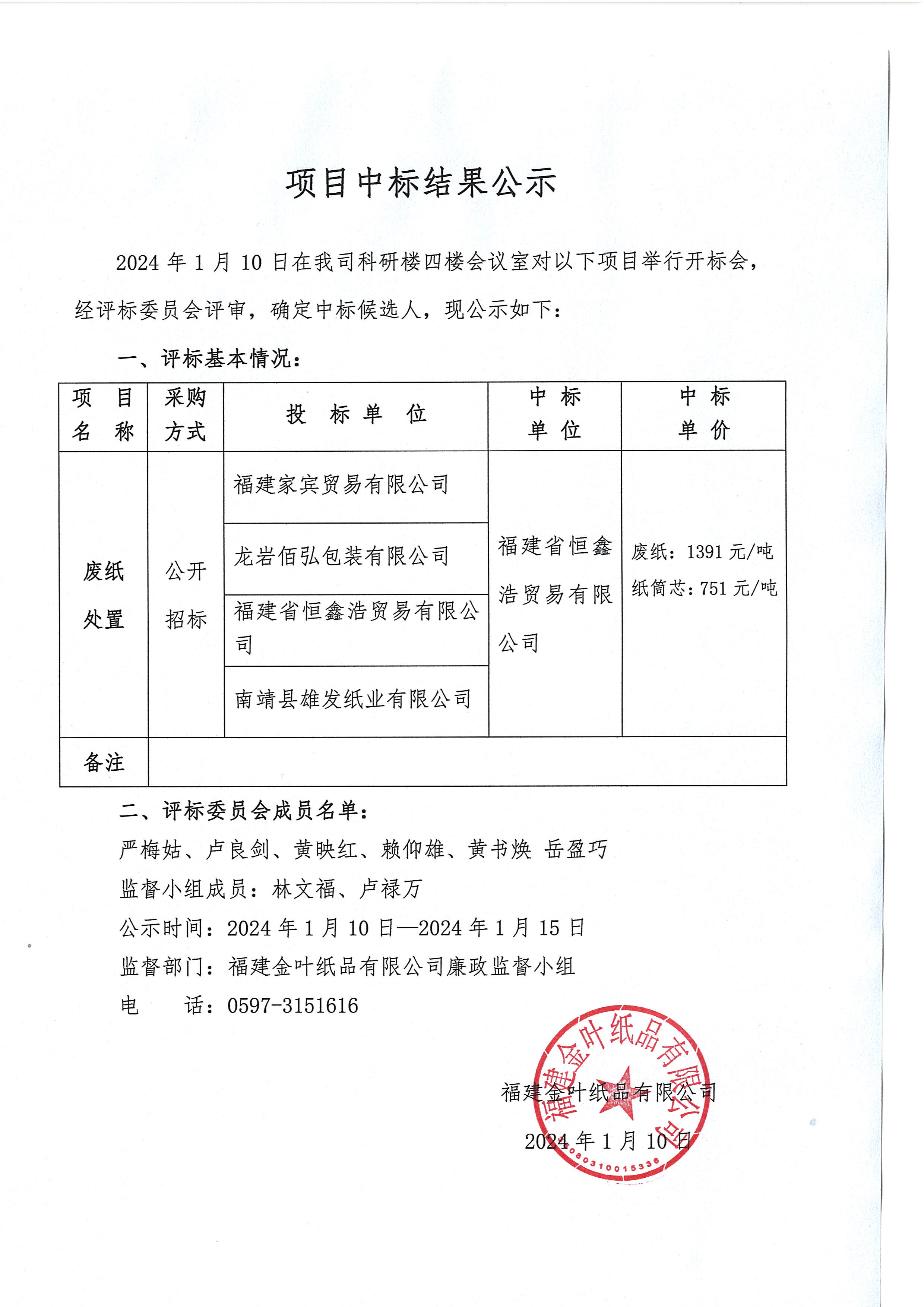 項目結(jié)果公示