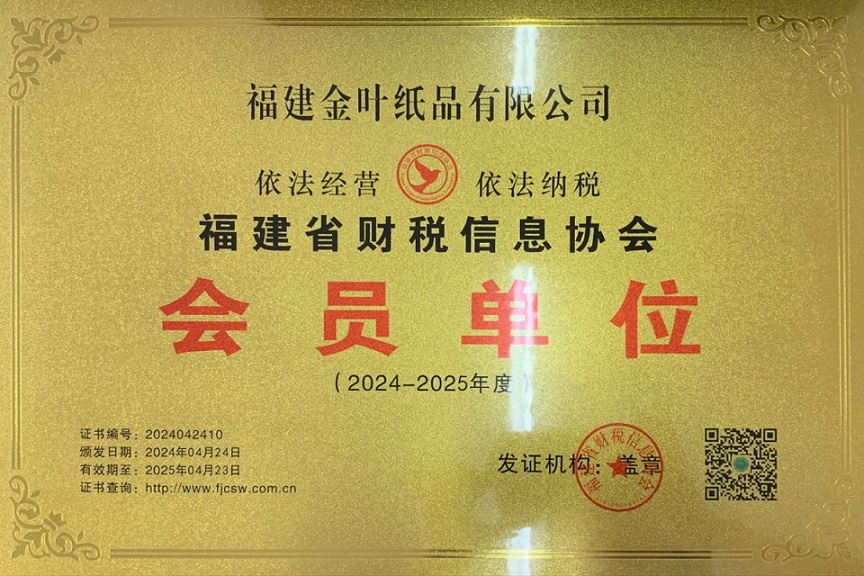 福建金葉紙品有限公司成為福建省財稅信息協(xié)會會員單位